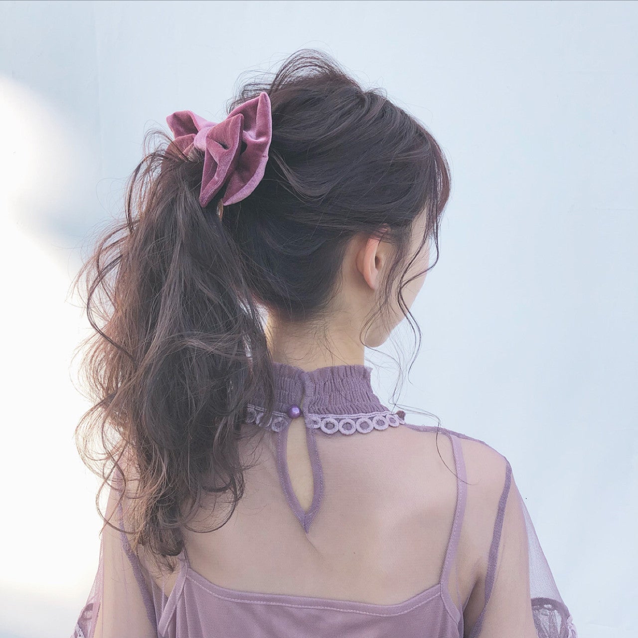 ポニーテールをつくったら間隔をあけてゴムで結んで玉ねぎにアレンジ!ゴムを隠してふんわり引き出すのがポイント♪