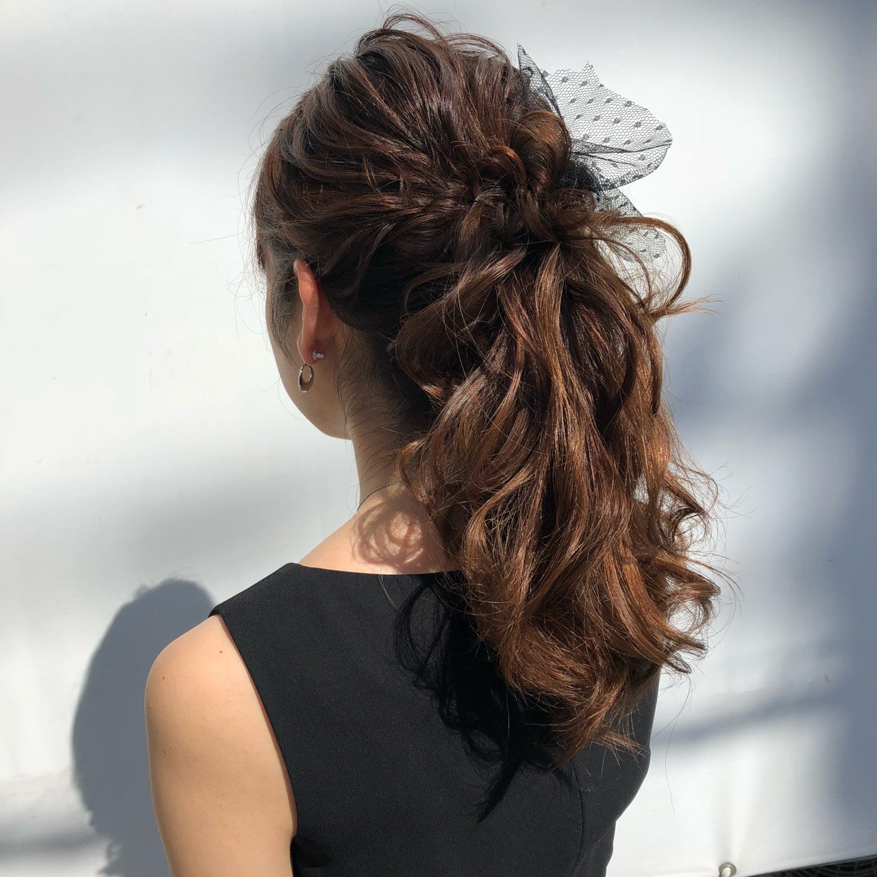 大人っぽく仕上げるならサイドの髪をしっかりまとめるのがポイント!波ウェーブで巻くのもおすすめです♪