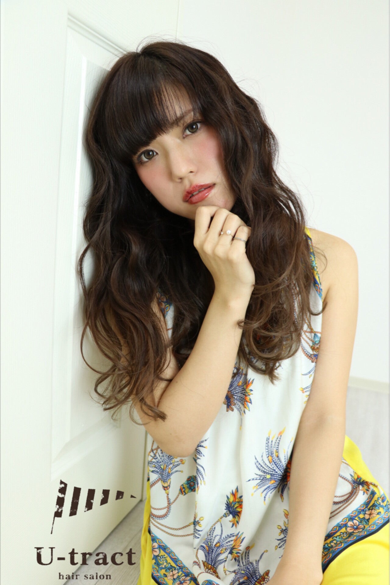 ロングのMIX巻きは、髪を少量ずつ取り分けてコテで巻くのがコツです。