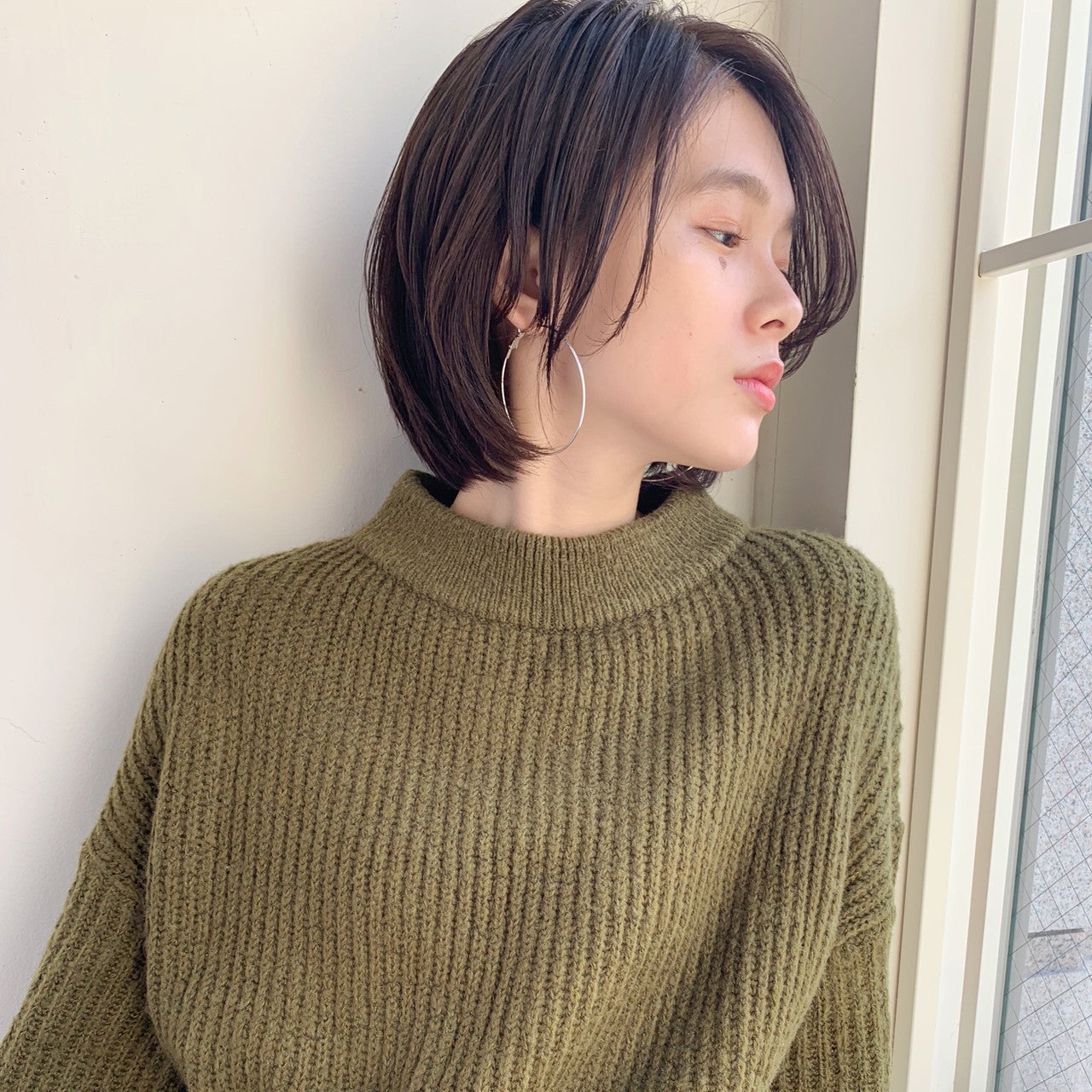 外ハネボブも片方を耳かけして、大人っぽさが増したヘアスタイルに変身!オン眉にカットして☆