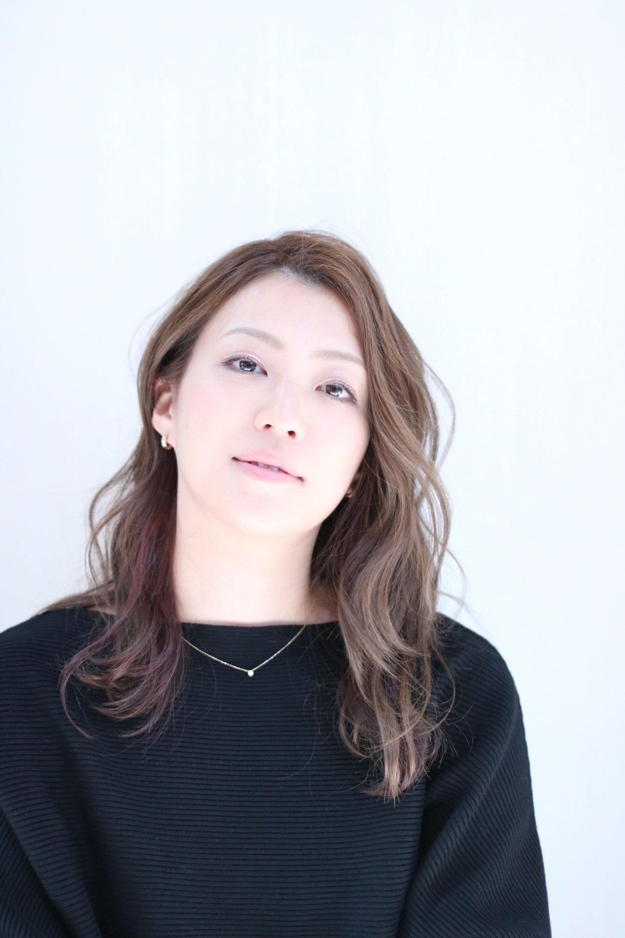ふんわり毛先のヘアスタイルは、片方を耳かけして大人女性のシルエットに仕上げて☆