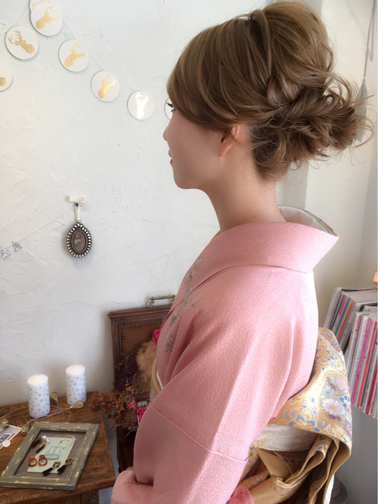 片側だけアップでまとめると、色っぽくツヤやかな大人可愛いスタイルで着物にもぴったり。