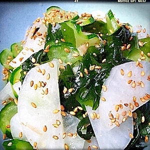 楽天レシピ:「きゅうり、大根、わかめの中華風酢の物 」より