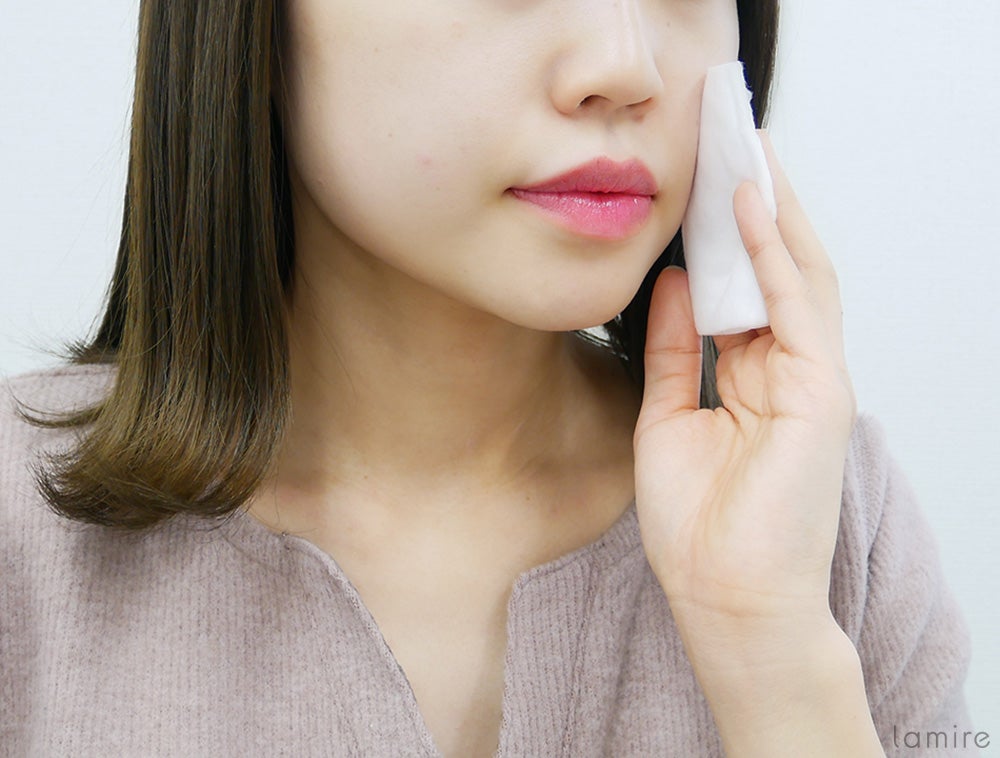 【step1】化粧水を含ませたコットンで優しく拭き取る