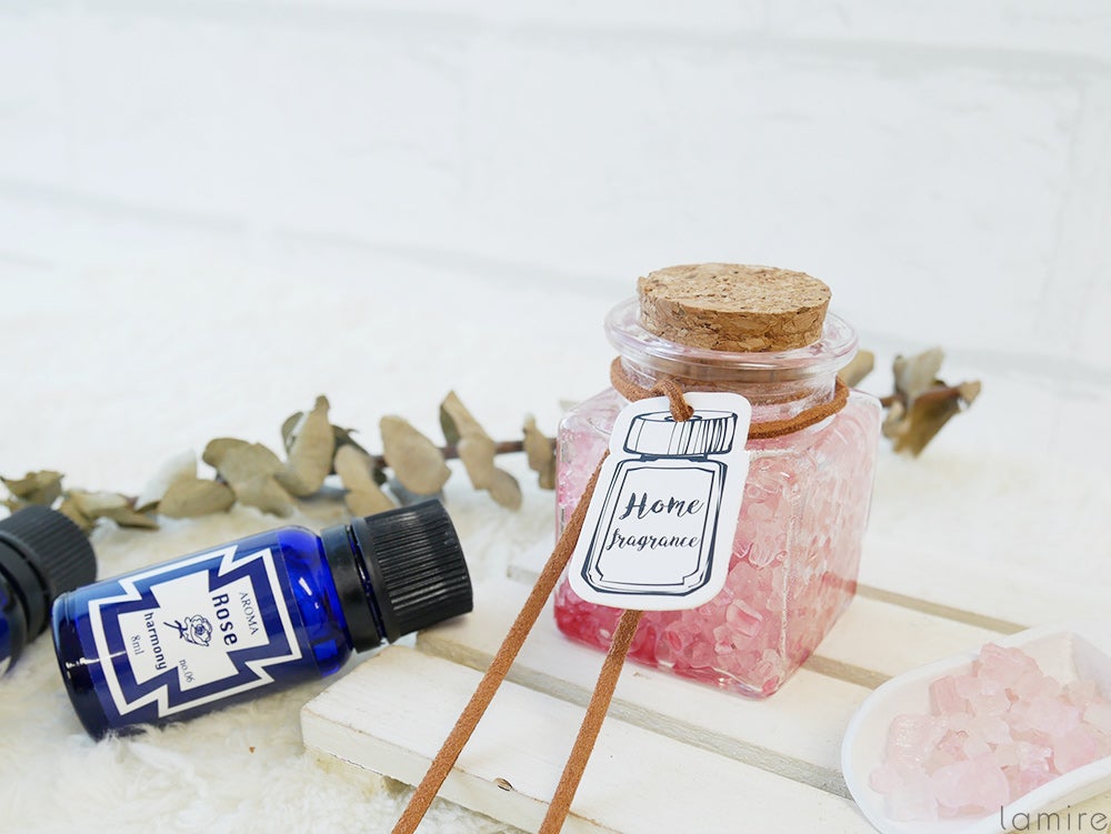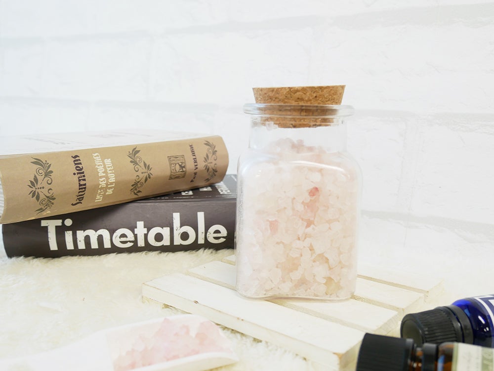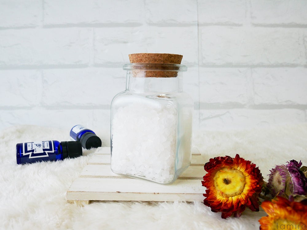 他に、アロマバスソルトを入れる容器は基本的には何でもOK。常温で約3週間ほど保管することもできるので、保管用に蓋があるとより安心です。