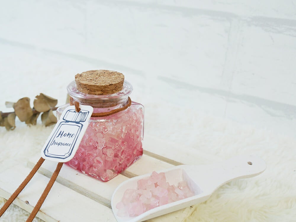 天然塩のアロマバスソルトはミネラルが豊富。いつもの何倍も汗をかいて、老廃物を洗い流すデトックス効果がありますよ。