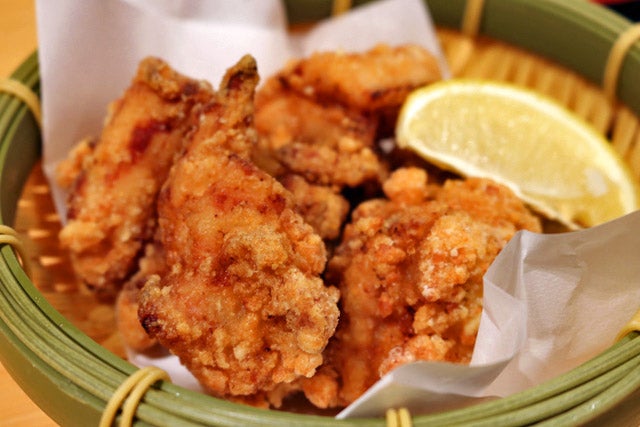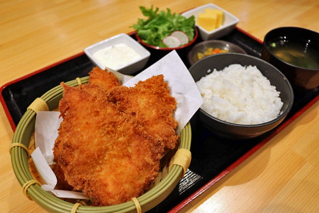 から揚げは上品な味付けで、いくらでも食べられそう。超お得な週替わり定食は午前11時から午後2時のランチタイム限定なので、お見逃しなく。