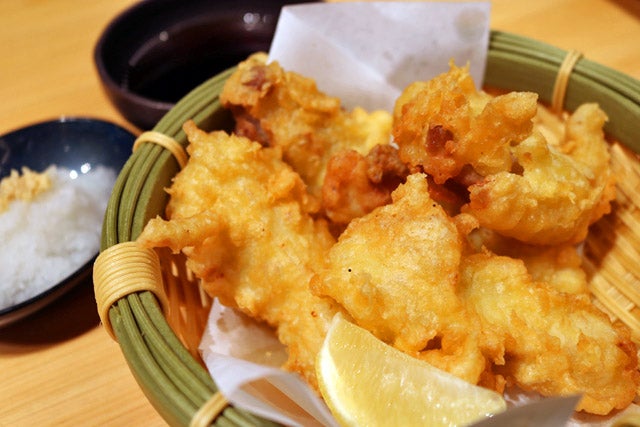 クリスピーなとり天は天つゆと大根おろし付き。