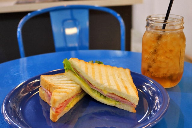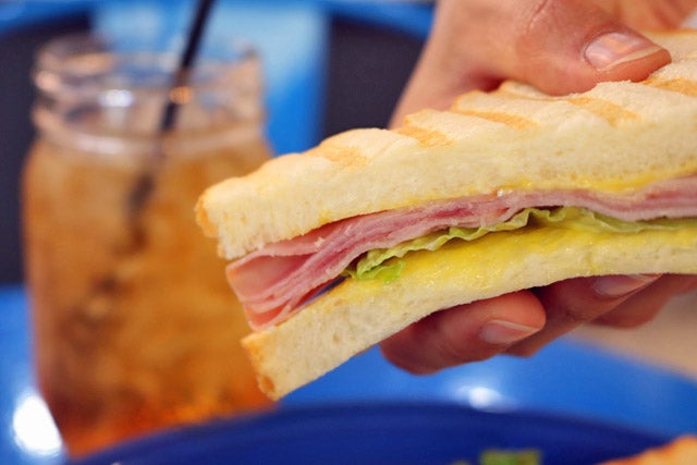 こちらはハムとレタスのサンドイッチ。パニーニメーカーで焼き色をつけ、表面はさくっと、中はふわふわに仕上げています。