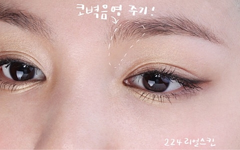 まず、眉毛から鼻に向かって