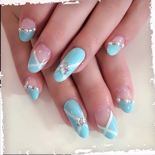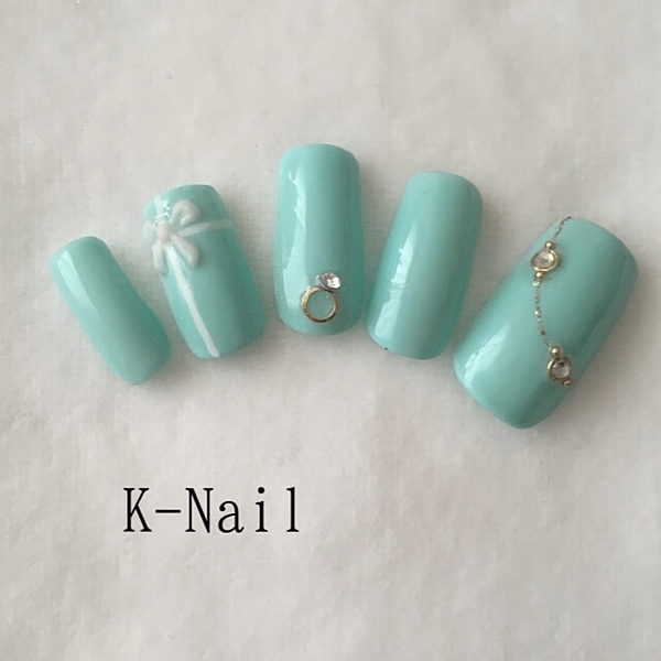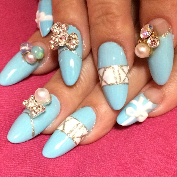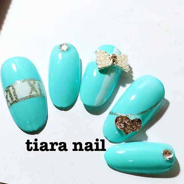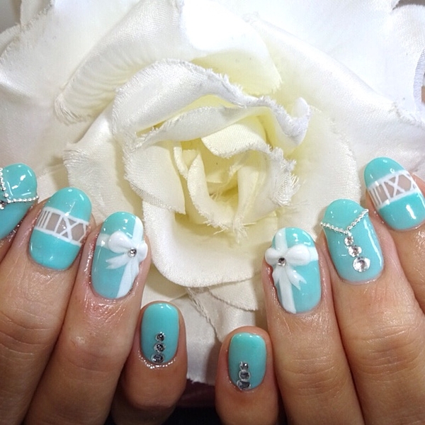 ティファニーブルーに大きなストーンっが綺麗なネイルデザイン。