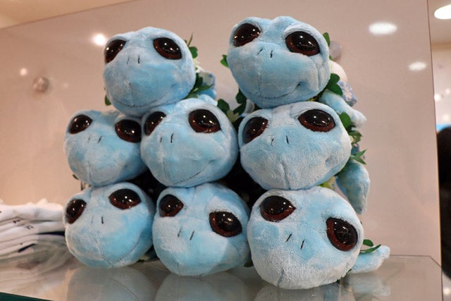 幸せを運んでくれるといわれるホヌのぬいぐるみはキッズに人気。甲羅の部分はテディベアと同じハワイアンプリントとなっています。