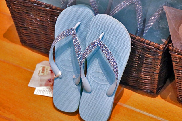 私が一目惚れしたのが、鼻緒にラインストーンをあしらったビーチサンダル。歩くたびに足元が輝いて、ビーチやお散歩が何倍も楽しくなること間違いなし。