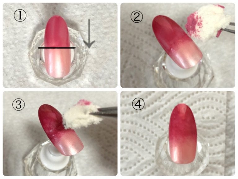 ある程度グラデーションの形になってきたら、スポンジに直接ポリッシュをつけて、