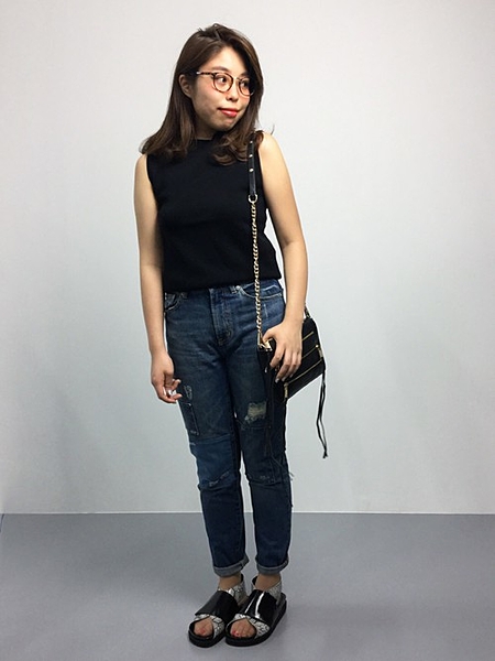 デニム×サンダルのカジュアルコーデも夏っぽい