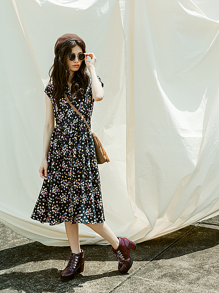襟付きワンピースで、飾りすぎないおしゃれを。