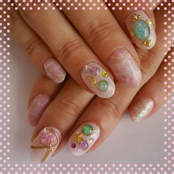 手首にジャラジャラ、指にキラキラ。つけるのはかわいいけれど、集めるのは面倒くさい。そんなあなた、“ブローチネイル”はいかがですか?爪のキャンパスをブローチに見立てて彩れば、アクセサリーなんか要らないし、指先を主役にできちゃいます!そんな“ブローチネイル”はいかが?
