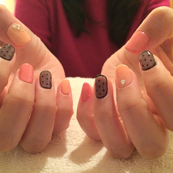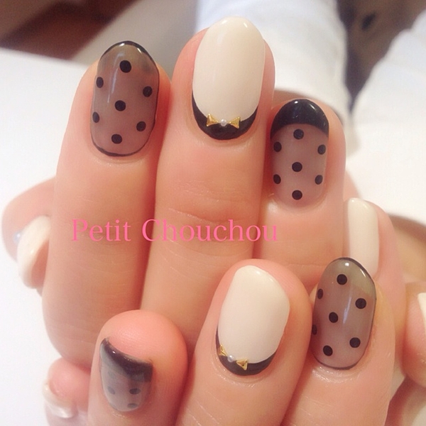 ドット柄ネイルの透け感が