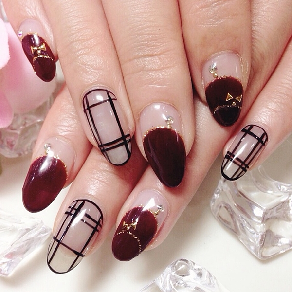 ファッションにもシースルーのデザインは多くありますよね♡思わずドキっとするシースルーは透け感でセクシーさがUPします♡そんなシースルーデザインを指先にも取り入れましょう!秋は落ち着いたカラーがトレンドなので、大人っぽい透け感をゲットしましょう♡