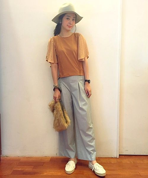 裾にかけて広がったフォルムが一見スカートのようなシルエットに見えるワイドパンツ。