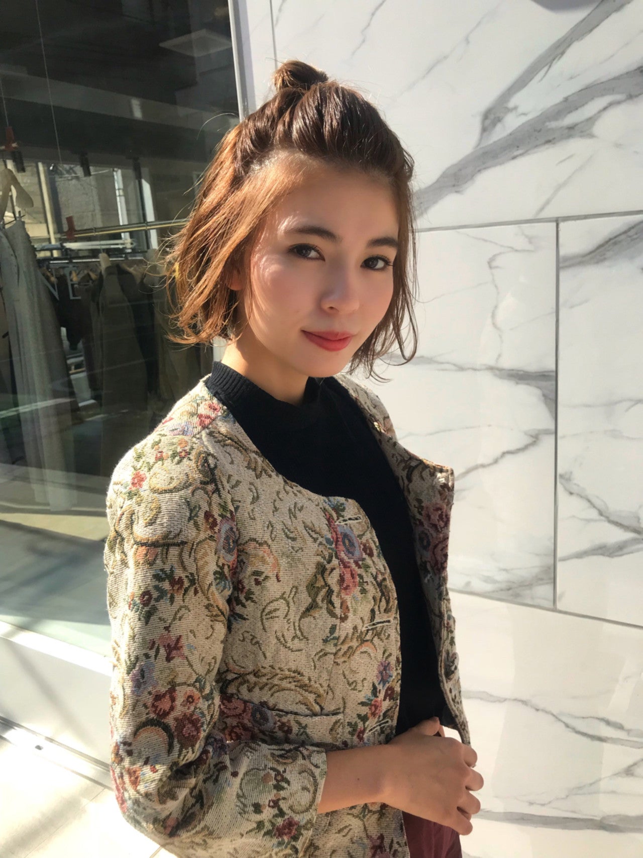 学校や仕事など、伸ばし中の前髪が目にかかって邪魔なときってありますよね。そんなときは前髪を上げちゃいましょう!前髪をふたつに分けてそれぞれをねじってピンで留めましょう。両サイドに後れ毛を引き出してゆるく巻くのがおしゃ見えポイント♡