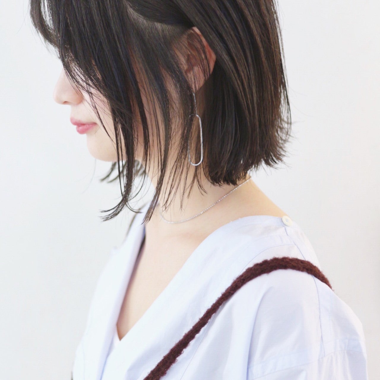 後頭部の丸みシルエットが美しいショートヘア。多めにとった前髪とのバランスもよく、頭の形がきれいに見えるのが特徴です。