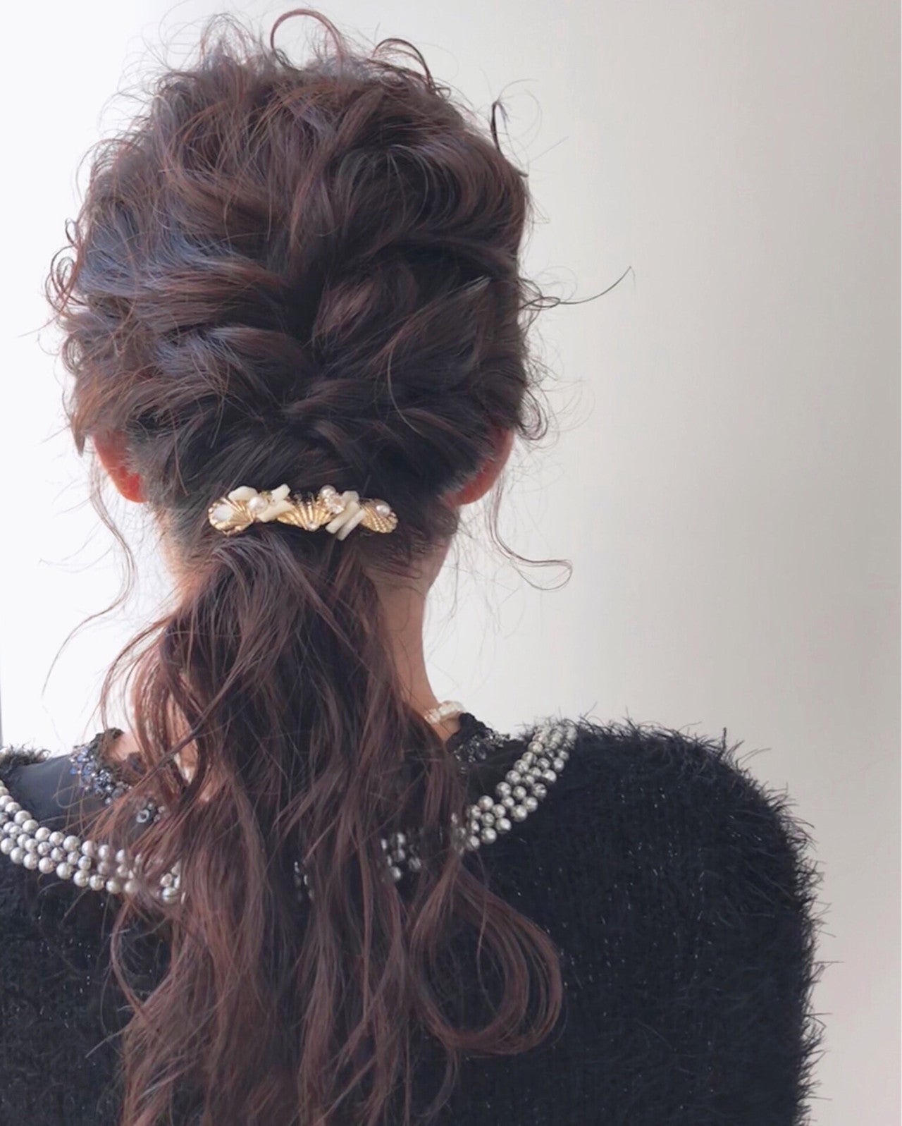 アクセとの相性も抜群のロープ編みシニヨンアレンジ