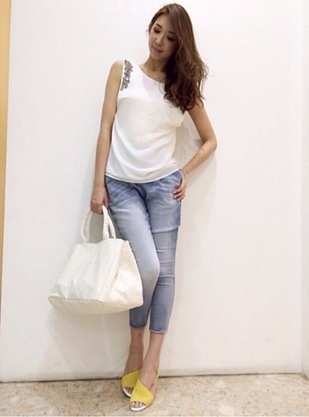 ホワイト系のコーディネートに合わせて大人っぽく。