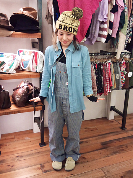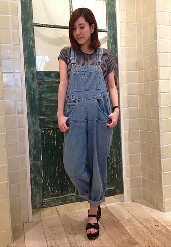 ハイウエストなオーバーオールはレディースコーディネートにもってこいなアイテムです。クロップド丈なのもポイントですね!!