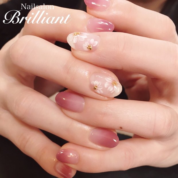 春の定番のフラワーネイルも、ホワイトカラーで可憐な印象に。ピンクのグラデーションネイルとかけ合わせれば、大人可愛いフラワーネイルの出来上がりです。