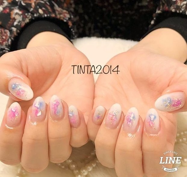 シェルパーツを取り入れて、一気に春らしい印象の指先に!ホワイトベースなら、カラフルなシェルネイルも上品にまとまります。