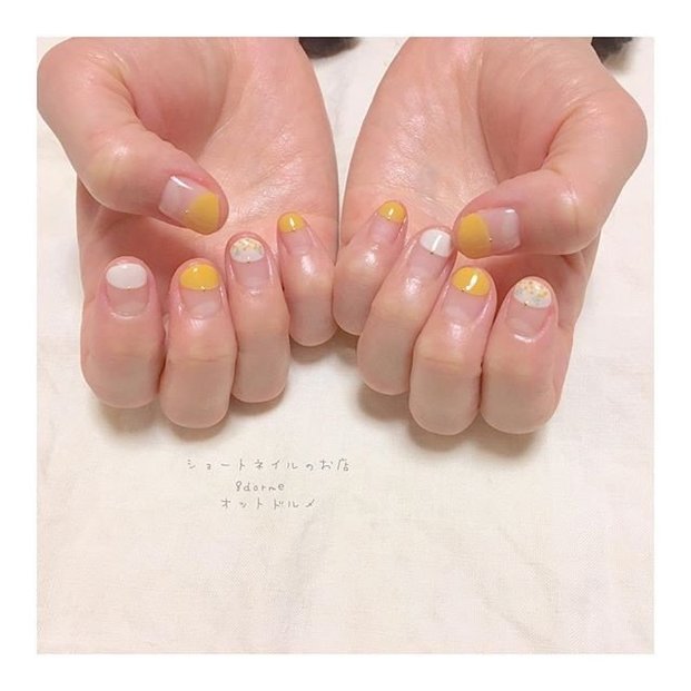 まるいフォルムが可愛いフレンチネイルは、カジュアルな印象で可愛らしいデザインが特徴です。フレッシュなイエローと一緒にレイアウトすれば、春らしい明るさが演出できます。