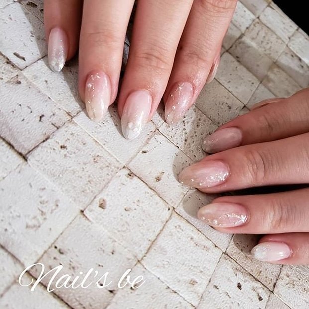グラデーションのホワイトには、ブルー系のビジューを取り入れることでトレンド感をプラス。大きめのビジューも、爽やかなクリアブルーなら大人な印象が叶います。