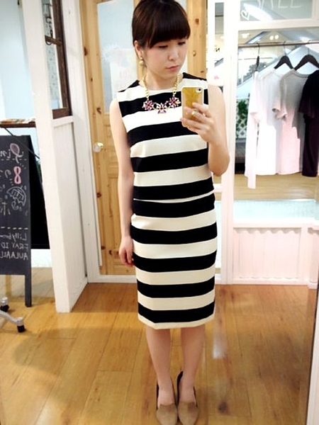 今期トレンドのボーダーのセットアップ。タイトOP感覚で着れるので、とても栄えるアイテム☆コーデの時単品としても使いやすいべ-シックな形!