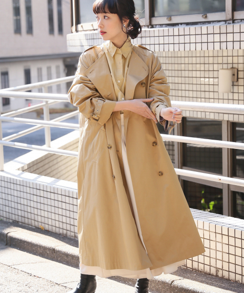 ライラックカラーの人気はこの春も継続中!淡いカラーのライラックは、トレンチコートスタイルに色っぽさをプラスします。ドットデザインを取り入れることで程よくカジュアルな印象も叶いますよ。