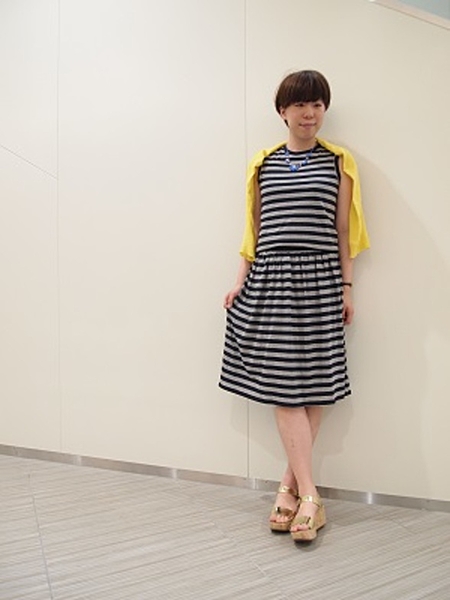 上下それぞれの太さが違うボーダーセットアップは女性の体のラインをきれいに見せてくれます♡タイトスカートで上品に♪