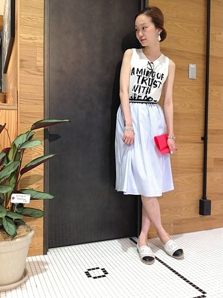 ロゴ入りタンクトップでも上品に仕上げる♪