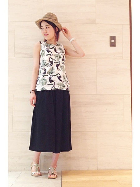 インパクト大なプリントタンクトップはモノトーンなどをあ合わせて落ち着いた上品なコーディネートを目指しましょう♪