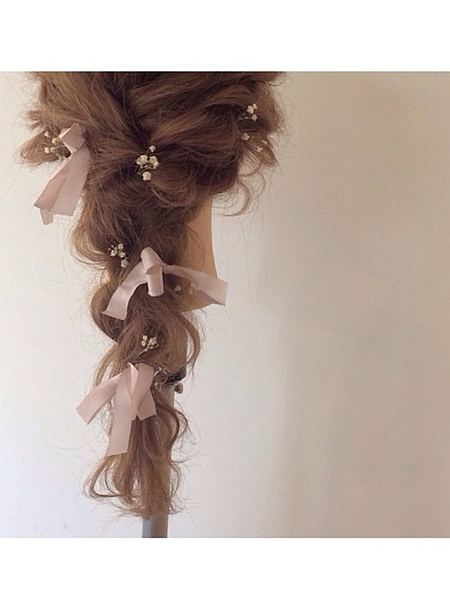 三つ編みの中にリボンを埋め込むだけで