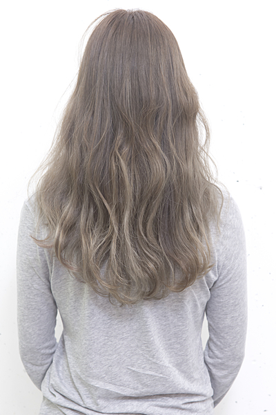 その後セカンドカラーで、ミルキーグレーを毛先にかけて薄くなるようにグラデーション状にカラーリング。