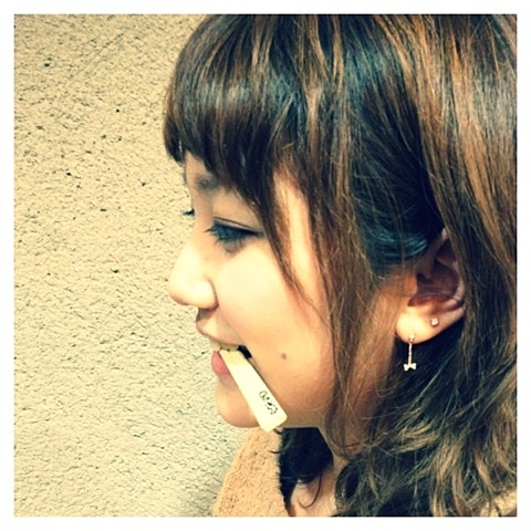 2)くわえたままで、「イー」の発音の口で口角をあげる。そのまま30秒キープ。