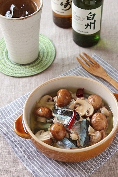 さんまとマッシュルームのアヒージョ