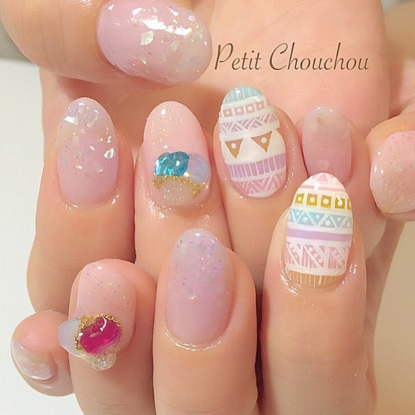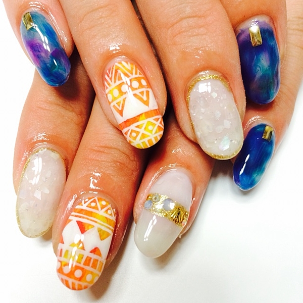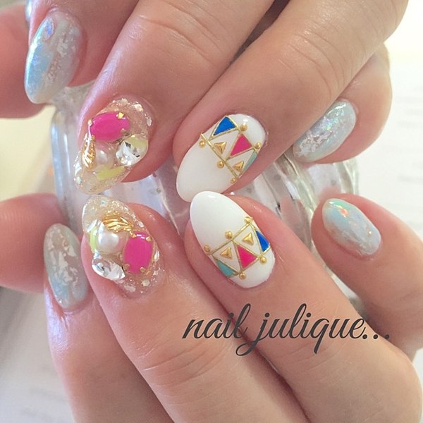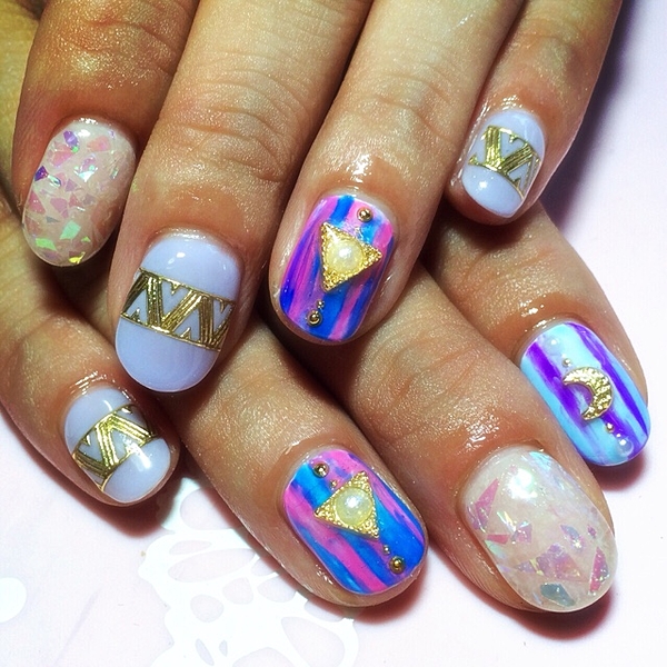 “ジオメトリックネイル”をご存知ですか?ジオメトリックとは、幾何学模様という意味です。つまりジオメトリックネイルとは、幾何学模様のデザインのネイルということ。ただの幾何学模様だけでなく、応用してエスニックデザインにも転びます。“ジオメトリックネイル”でみんなの視線を集めましょ。