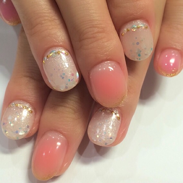 ピンクベージュやオレンジベージュでつくる、シースルーネイル。