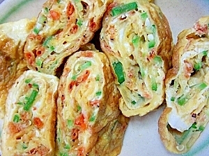 楽天レシピ:「お弁当*桜えびとオクラの卵焼き 」より