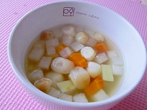 楽天レシピ:「コロコロ楽しい♪桜えびと大根のコンソメスープ 」より
