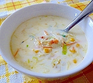 楽天レシピ:「簡単♪桜えびと野菜たっぷりクリームスープ 」より