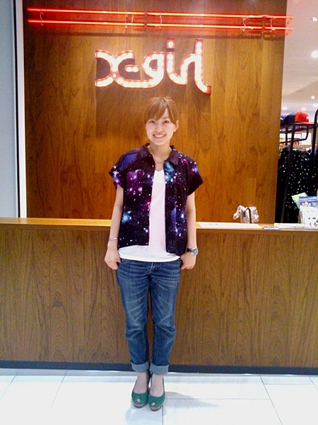 夏っぽい柄シャツ+前裾縛りデザイン。