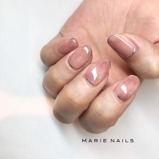 透け感のあるニュアンスカラーネイルなら、おしとやかで清楚な印象に。ポイントでシルバーカラーを合わせることで、涼しげな夏ネイルに仕上がります。