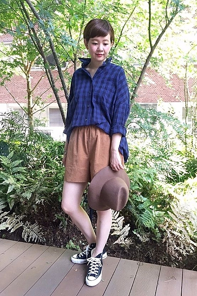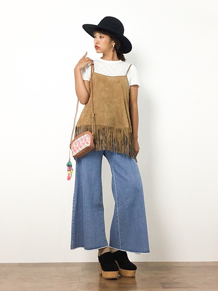 ハット/トップス/ボトム..茶色のスエードアイテムで先取り秋コーデ